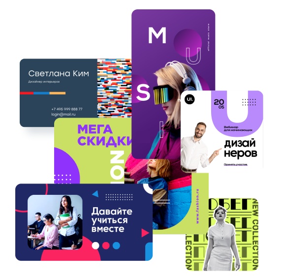 Не знаете, с чего начать? Просто выберите понравившийся шаблон, замените текст, элементы, цвета или изображения на свои и получите готовый контент под любые цели за несколько минут.